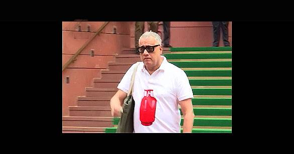 संसद परिसर में एलपीजी सिलेंडर छपी टी-शर्ट पहने नजर आए सांसद डेरेक ओ ब्रायन