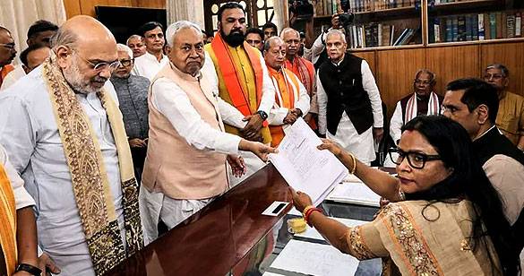अमित शाह की मौजूदगी में नीतीश कुमार ने भरा राज्यसभा चुनाव के लिए नामांकन