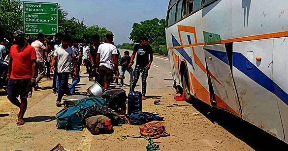 यूपी: गाजीपुर में डिवाइडर से टकराने के बाद पलटी बस, 2 की मौत और 35 घायल