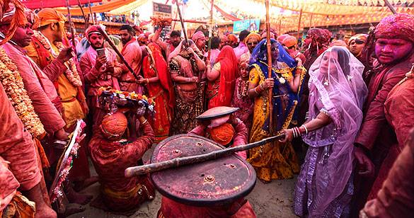 आज नंदगांव की हुरियारिनों ने चलाईं बरसाना के हुरियारों पर प्रेम पगी लाठियां