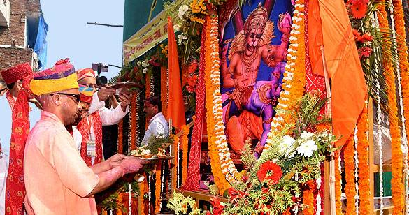 RSS द्वारा निकाली जाने वाली नरसिंह भगवान की शोभायात्रा में शामिल हुए योगी