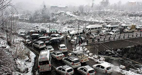 जम्मू-कश्मीर में लगातार बर्फबारी, पीर पंजाल और श्रीनगर के बीच सैकड़ों वाहन फंसे