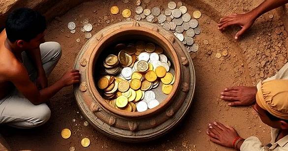 उत्तर प्रदेश: आगरा में मिला सोने-चांदी के सिक्कों से भरा मटका, गांव में लगी भीड़