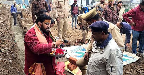 संभल: जामा मस्जिद के सामने पुलिस चौकी निर्माण के लिए हुआ भूमि पूजन