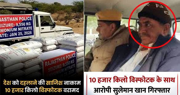 राजस्थान के नागौर से 10 हजार किलो विस्फोटक बरामद, आरोपी सुलेमान गिरफ्तार