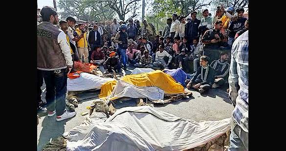यूपी: मथुरा में गोवंश के अवशेष मिलने से आक्रोश, रोड जाम किया गया