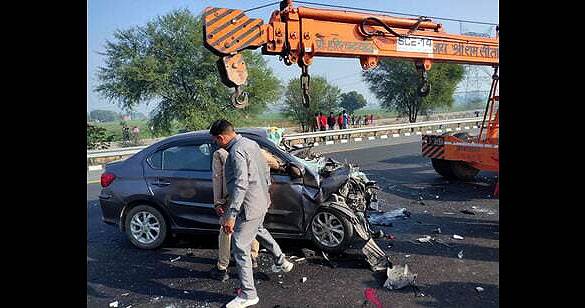आगरा-लखनऊ एक्सप्रेस वे पर खड़े डंपर में घुसी कार, चार लोगों की मौत