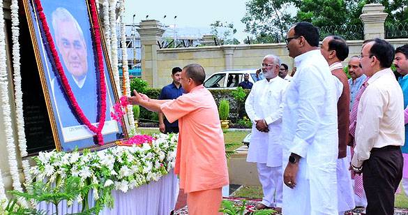 अटल जी की पुण्यतिथि पर सीएम योगी ने उनकी प्रतिमा पर माल्यार्पण किया