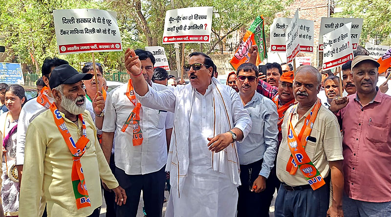 बीजेपी ने किया जल संकट को लेकर दिल्ली सरकार के खिलाफ विरोध प्रदर्शन