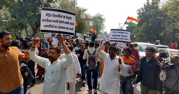 CAA का विरोध करने पर कांग्रेस मुख्यालय के बाहर हिंदू शरणार्थियों का प्रदर्शन