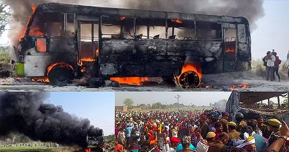 गाजीपुर में यात्रियों से भरी बस पर गिरा हाईटेंशन बिजली का तार, 5 यात्री जिंदा जले