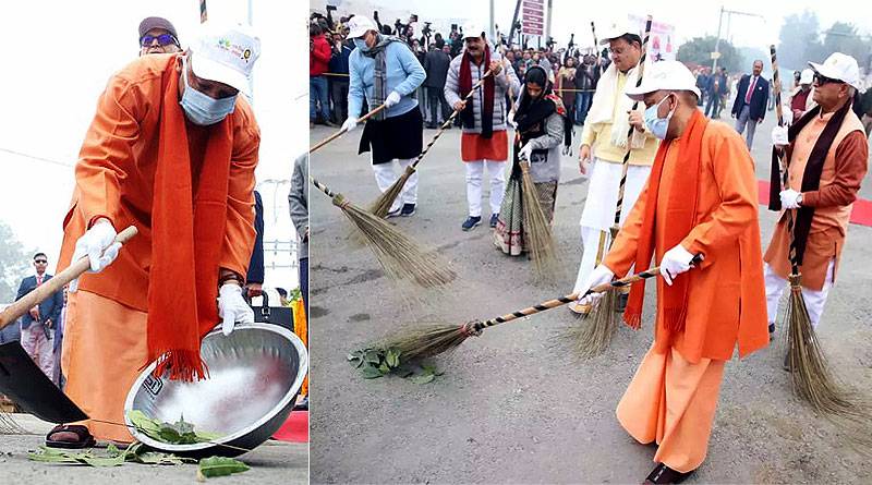 अयोध्या: सीएम योगी ने झाड़ू लगाकर किया स्वच्छ तीर्थ महाभियान का शुभारंभ
