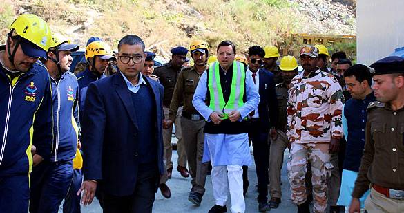 उत्तराखंड: सुरंग में फंसे 34 मजदूरों की जानकारी लेने पहुंचे सीएम धामी
