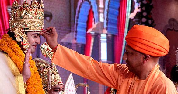 दीपोत्सव से पूर्व सीएम योगी भगवान राम के राज्याभिषेक में हुए शामिल, खींचा रथ