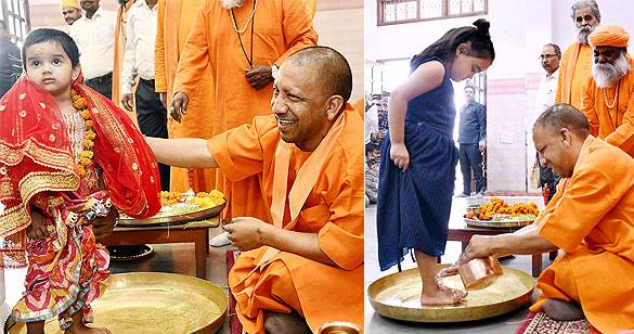 नवरात्र: योगी आदित्यनाथ ने आज गोरखनाथ मंदिर में किया कन्या पूजन