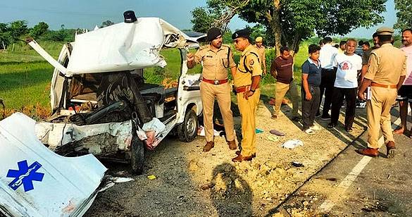 शव लेकर जा रही एम्बुलेंस में अज्ञात वाहन ने मारी टक्कर, मृतक की पत्नी और 3 बेटियों की मौत