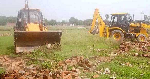 अतीक अहमद के करीबी बिल्डर मोहम्मद मुस्लिम की अवैध प्लाटिंग पर चला बुलडोजर