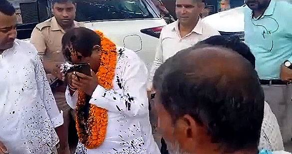 घोसी में भाजपा प्रत्याशी दारा सिंह चौहान पर स्याही फेंकी, सपा पर लगा आरोप