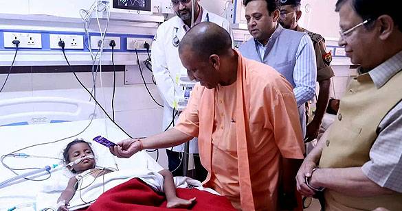 लखनऊ कोर्ट में फायरिंग के दौरान घायल बच्ची से मिले सीएम योगी
