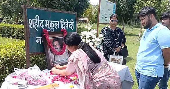 जवाहर बाग कांड: शहीद मुकुल द्विवेदी की पत्नी पहुंची मथुरा, दी श्रद्धांजलि