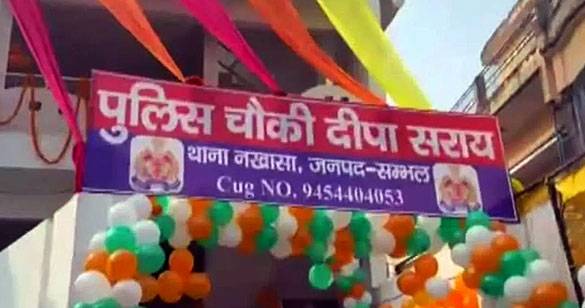 संभल हिंसा में बरसाए गए पत्थरों से बनी पुलिस चौकी का एक बच्ची ने किया उद्घाटन