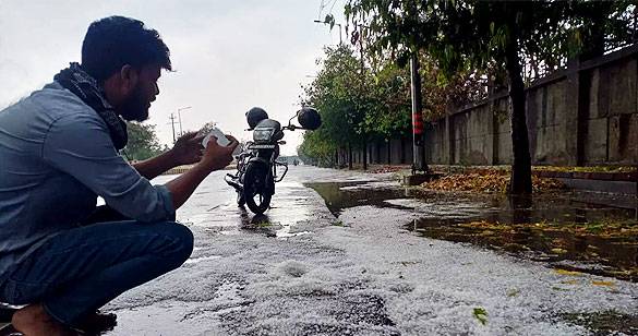 उत्तर प्रदेश के नोएडा में भारी बारिश के साथ ओले भी पड़े, सफेद चादर बिछी
