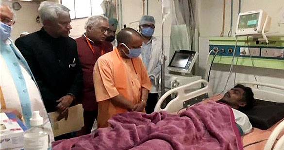 कोल्ड स्टोरेज हादसे में घायल हुए लोगों को देखने अस्पताल पहुंचे सीएम योगी