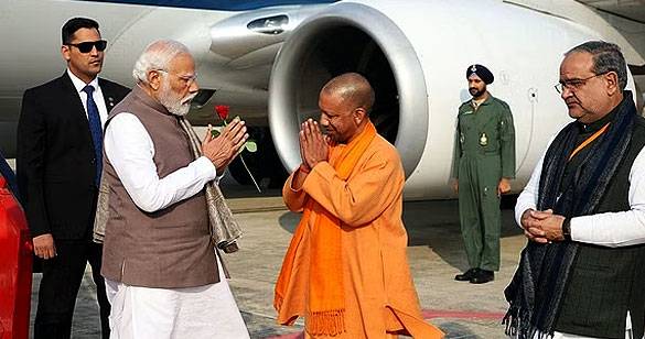 वाराणसी पहुंचे पीएम मोदी, सीएम योगी सहित कई नेताओं ने की अगवानी