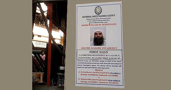 NIA ने रतलाम में लगाए फरार आतंकवादी फिरोज खान के पोस्टर