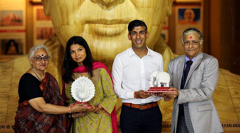 पत्नी के साथ अक्षरधाम मंदिर पहुंचे ब्रिटेन के पीएम सुनक, पूजा-अर्चना की