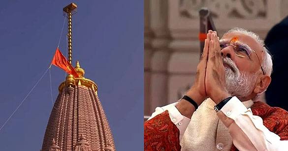 पीएम मोदी और संघ प्रमुख भागवत ने राम मंदिर के शिखर पर फहराई धर्मध्वजा