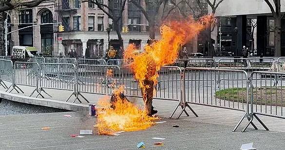 अमेरिका: मैनहट्टन में एक व्यक्ति ने कोर्ट के बाहर लगाई खुद को आग