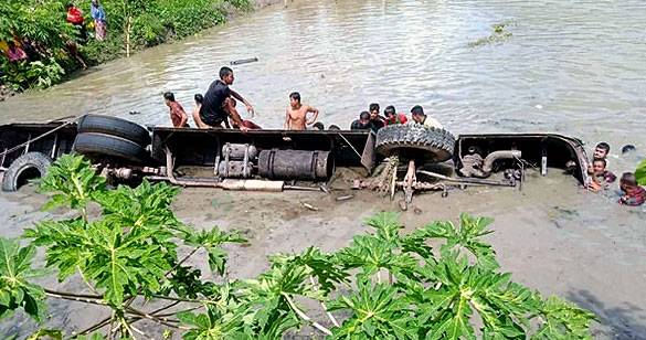 बांग्लादेश: तालाब में बस गिरने से 17 लोगों की मौत और एक दर्जन से ज्यादा घायल
