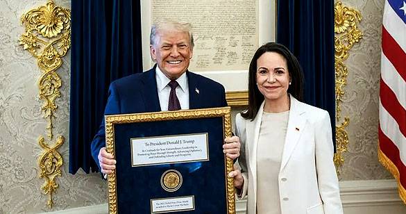 वेनेज़ुएला की विपक्षी नेता मारिया मचादो ने ट्रंप को सौंपा अपना नोबेल शांति पुरस्कार