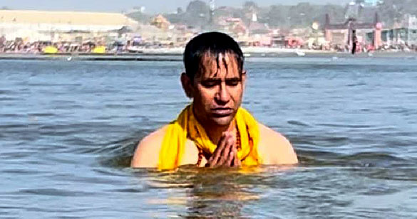 भोजपुरी स्टार निरहुआ ने किया संगम स्नान, पीली धोती और गले में गमछा वाली तस्वीर शेयर की