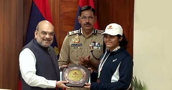 दिल्ली पुलिस हेडक्वार्टर में गृह मंत्री ने सम्मानित किए राष्ट्रमंडल खेलों के पदकवीर