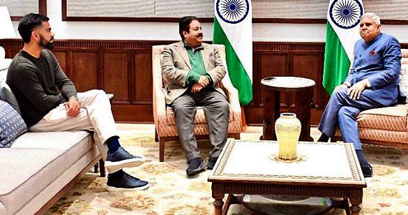 विराट कोहली के साथ उपराष्ट्रपति धनखड़ से मिले BCCI के उपाध्यक्ष राजीव शुक्ला