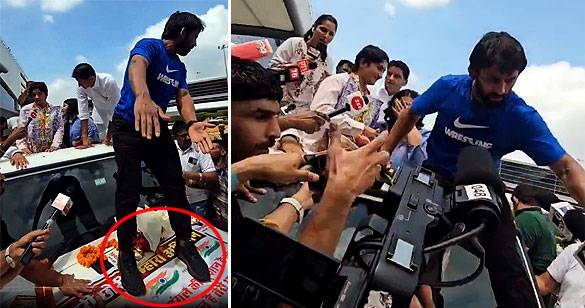 बजरंग पूनिया ने जोश में खोया होश: पैरों से तिरंगे को कुचला, वीडियो वायरल