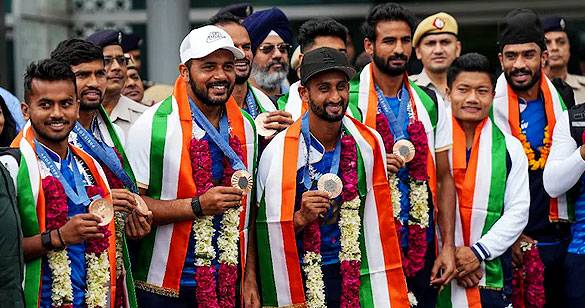 पदक जीतकर भारतीय हॉकी टीम देश लौटी, हवाई अड्डे पर हुआ जोरदार स्वागत