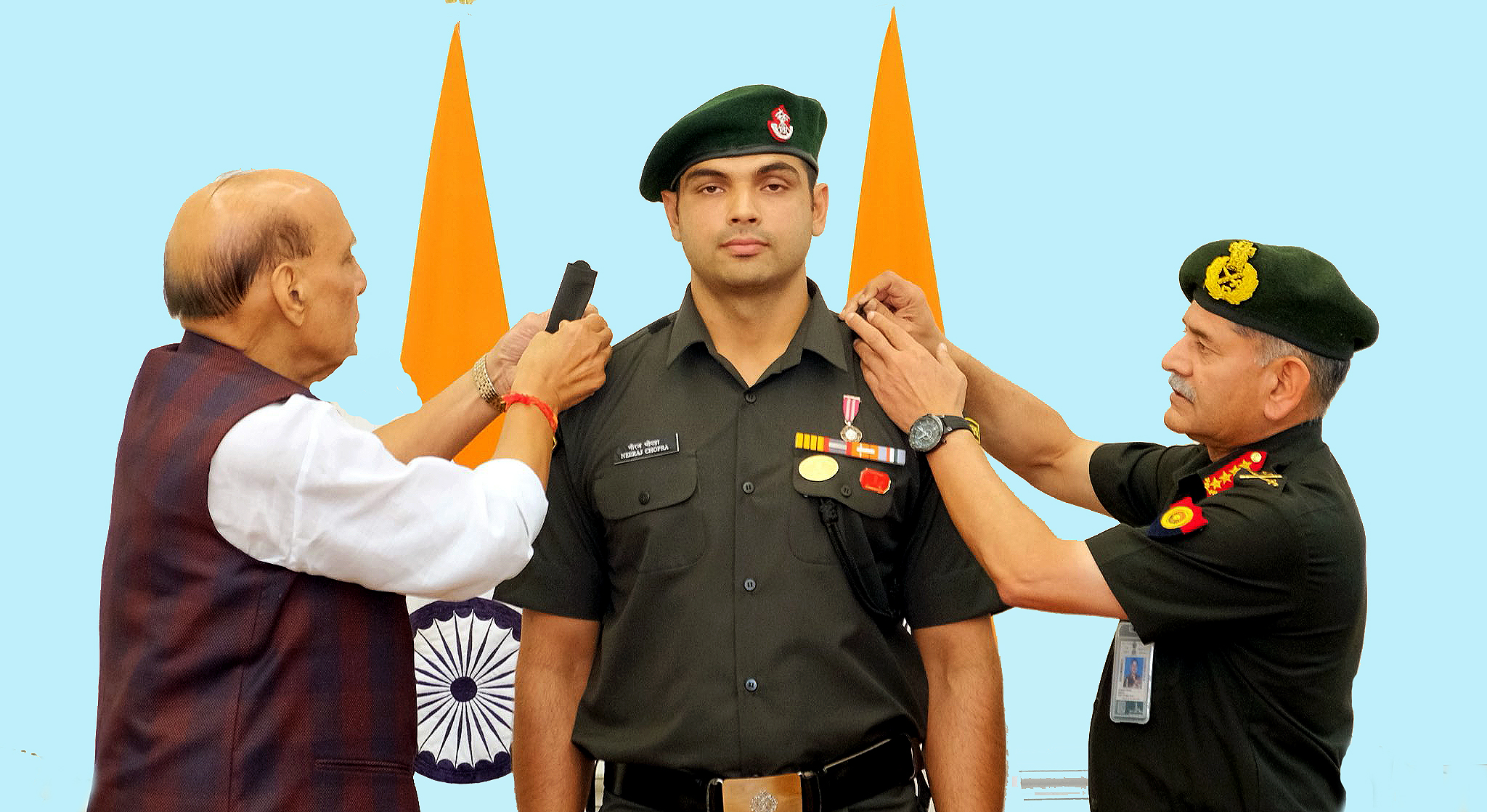 भारतीय सेना में लेफ्टिनेंट कर्नल बने नीरज चोपड़ा, रक्षा मंत्री राजनाथ सिंह ने दी उपाधि