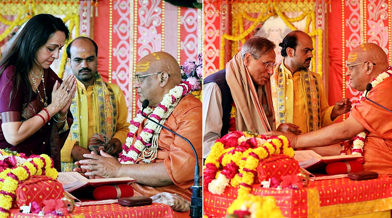 मन्दिर में श्रीमद्भागवत कथा, हेमा मालिनी व शैलजाकांत मिश्र पहुंचे