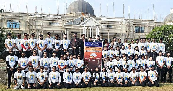 संस्कृति विवि के मैदान में हुआ सूर्य नमस्कार का आयोजन, हेल्दी डाइट को लेकर दी जानकारी