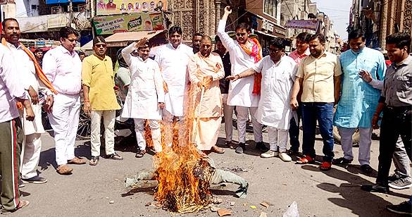 विश्व हिंदू परिषद और बजरंग दल ने फूंका अखिलेश यादव का पुतला