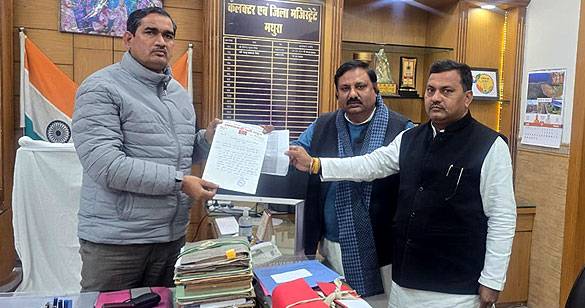 बांके बिहारी मंदिर रेलिंग का ठेका सलीम अहमद को देने का किया विरोध