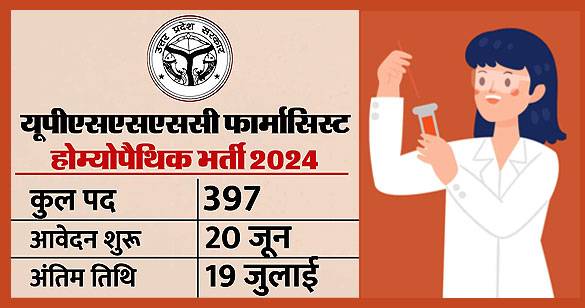 यूपी में फार्मासिस्ट के पदों पर भर्ती के लिए आवेदन की प्रक्रिया 20 जून से शुरू