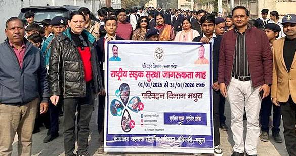 यातायात नियमों को प्रति जागरूकता के लिए छात्रों ने निकाली रैली