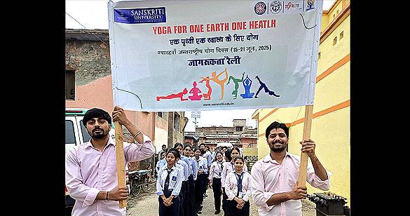 संस्कृति विवि के विद्यार्थियों ने योग के लिए किया जागरूक, निकाली रैलियां
