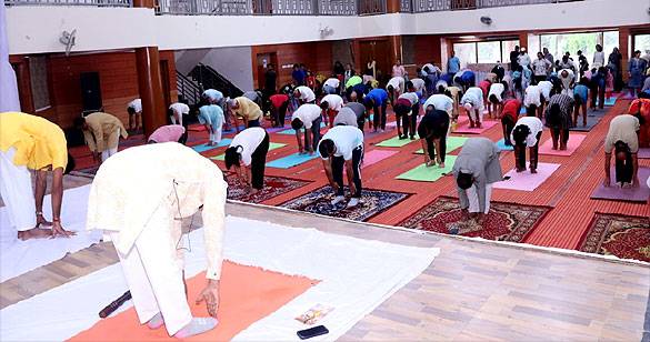 मथुरा कोर्ट के केंद्रीय कक्ष में योगासन कर मनाया गया अंतर्राष्ट्रीय योग दिवस