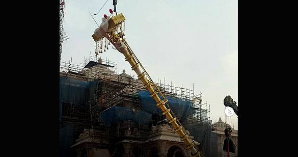 अयोध्या के श्रीराम जन्मभूमि मंदिर में मुख्य शिखर पर स्थापित किया गया ध्वज दंड