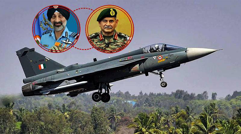 एयर चीफ मार्शल एपी सिंह और सेना प्रमुख जनरल द्विवेदी ने एकसाथ भरी तेजस विमान में उड़ान